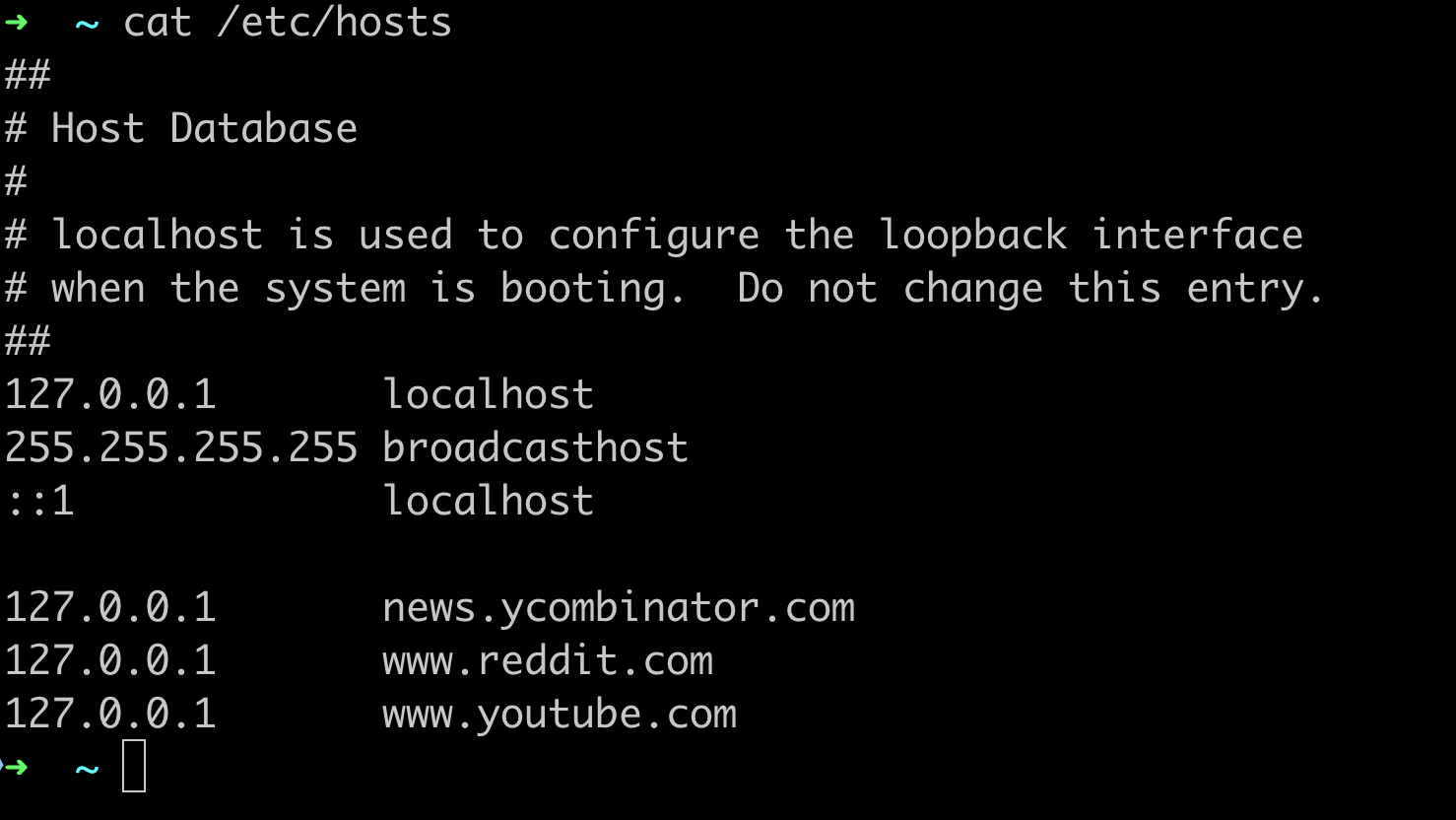 I decided to permanently block Reddit and Hacker News – not because they aren't valuable, but because the distraction outweighs their benefit for me. I also blocked YouTube on my computer by adding all three to my hosts file.