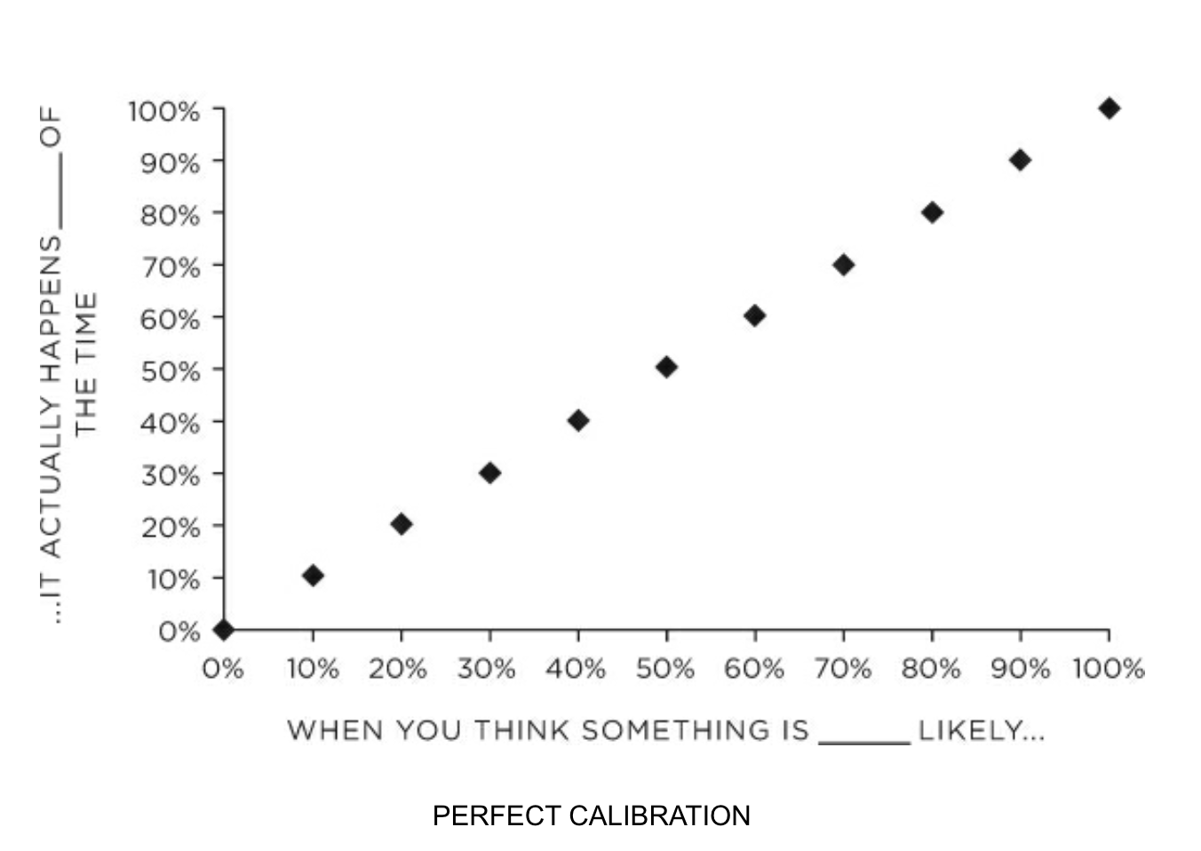 Spock is overconfident, meaning that his confidence that he’s right outstrips his actual accuracy. In that respect, Spock isn’t all that different from most of us (except that he makes a much bigger deal about how his predictions are objective and “logical,” which is why I’ve chosen to make an example of him). We very often speak as if there’s no chance we could be mistaken — “There’s no way he can make that shot from that distance!” or “I’ll definitely have that done by Friday” — and yet we turn out to be wrong nonetheless.