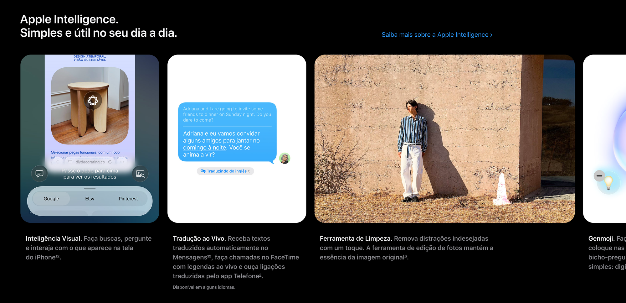 E se você for usar a IA direto no seu dispositivo, com todas as garantias de privacidade que isso oferece hoje em dia, tem que usar um iPhone de última geração, como um iPhone 17 Pro, por exemplo, que tem “Inteligência Apple.”